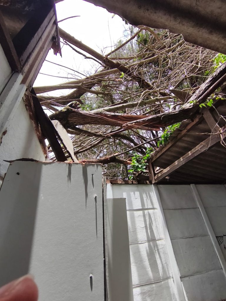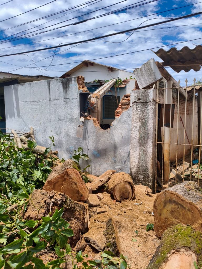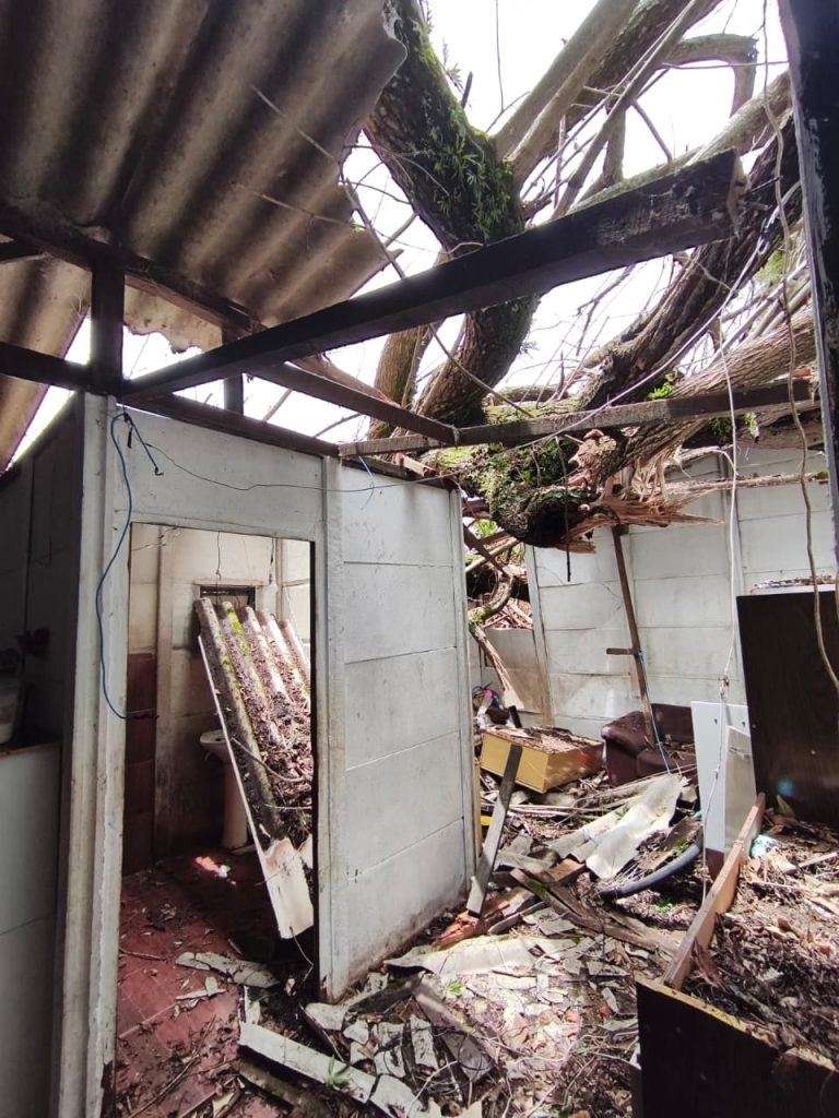 - Árvore caída sobre uma casa na região central, causando grandes danos estruturais. A família foi prontamente assistida e realocada provisoriamente pela Defesa Civil;