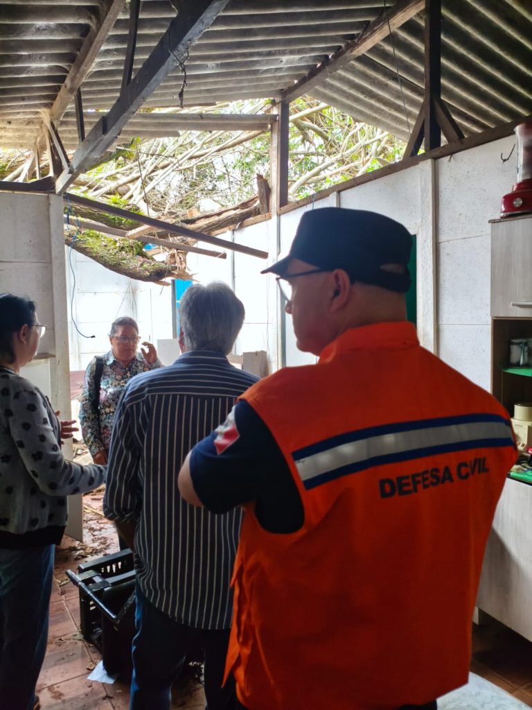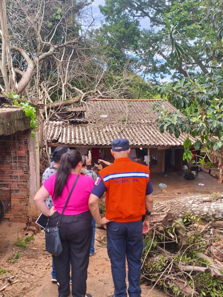 - Destelhamento de uma residência no bairro Centenário, onde as equipes prestaram assistência e disponibilizaram lonas para proteção do imóvel;