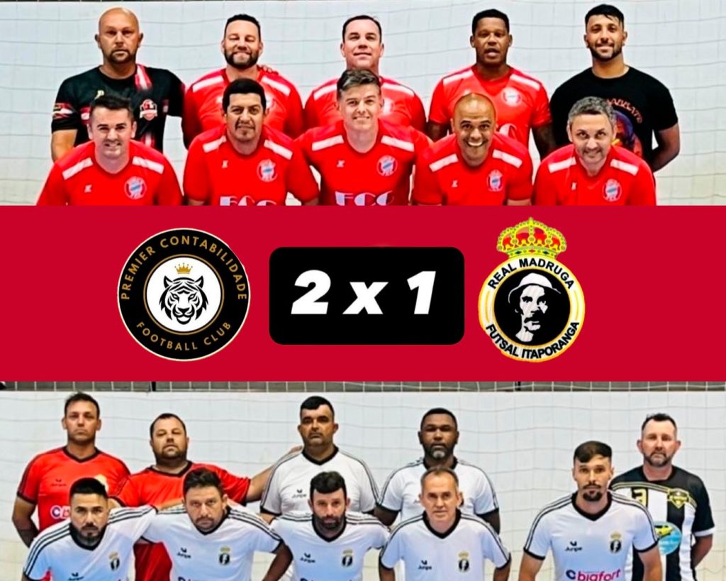 No primeiro confronto da noite, o Premier venceu o Real Madruga, da cidade de Itaporanga, por 2 a 1, em uma partida equilibrada e cheia de oportunidades. A equipe itarareense demonstrou garra e organização, segurando a pressão adversária nos minutos finais para garantir a classificação.