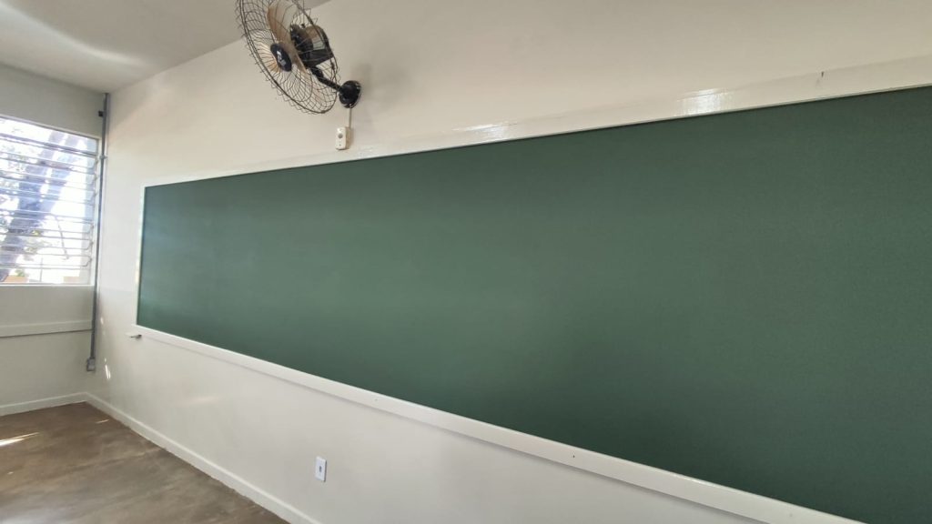 Na E.M. Prof. Newton Marques, os serviços contemplam a pintura geral interna e externa da unidade, incluindo paredes, tetos, portas, janelas e mobiliário fixo. A obra tem um investimento de R$ 76.281,86, provenientes de recursos próprios do município.