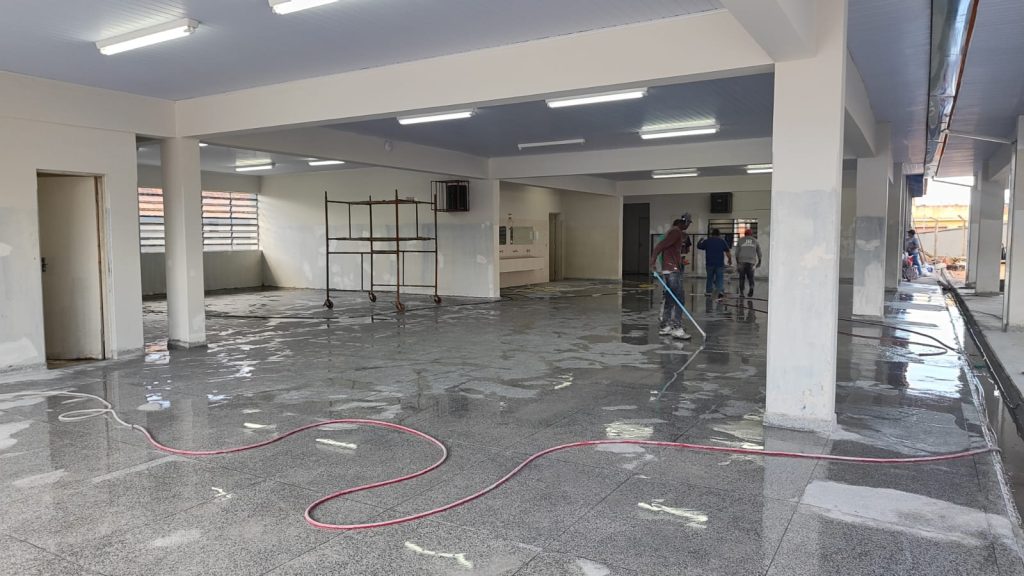 Já na E.M. Prof. Juracy Martins, os trabalhos são mais amplos e incluem pintura interna e externa, troca de portas e fechaduras, manutenção parcial do telhado da cozinha e do refeitório, substituição do forro, reforma do piso do pátio com instalação de granilite e a colocação de corrimãos nas rampas, garantindo mais acessibilidade aos usuários. Além disso, a unidade também passa por intervenções no sistema de drenagem pluvial, com reforma de canaletas, troca de tubos por elementos de maior vazão e construção de novas caixas de passagem. Esta obra conta com um investimento total de R$ 325.418,12, provenientes de recursos federais.